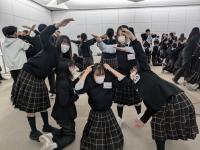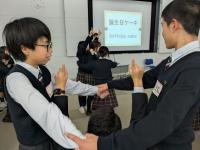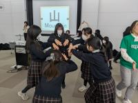 「体を使って意思疎通を行うワーク」や「即興で考えて体全体で表現をするワーク」などを通して、生徒たちは一人で考えることの楽しさや不安、集団で考えることの楽しさや難しさを体感していました。