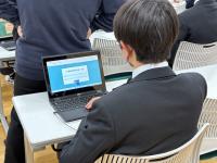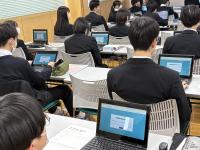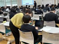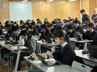 生徒たちは、デジタル環境での問題演習にも関わらず、ICT端末をスムーズに操作しながら、真剣な表情で課題に向き合っていました。