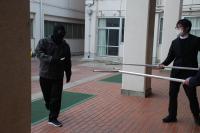 校内に不審者が侵入したという想定で、生徒たちは教職員の誘導に従い、迅速に教室の施錠やバリケード設置を行いました。生徒たちはこの訓練において、「自分の命を守るためにはどうするべきか」ということを考えながら、協力して迅速な行動をとることができました。