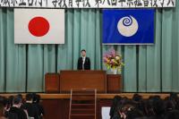 集会では、1・2年次の代表生徒によるビブリオバトル発表や顕著な活躍を見せた生徒たちの表彰伝達も行い、全校生徒でその努力を称えました。生徒支援部長講話や校長講話では、冬休みの過ごし方や、新しい年を迎えるにあたっての志について話があり、生徒たちは引き締まった表情で聞き入っていました。