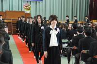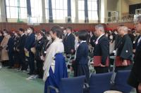 今日まで生徒たちを慈しみ、本校の教育活動を温かく支えてくださいました保護者の皆様、ならびに地域の皆様に、心より深く御礼申し上げます。皆様の支えがあったからこそ、生徒たちは今日という素晴らしい日を迎えることができました。