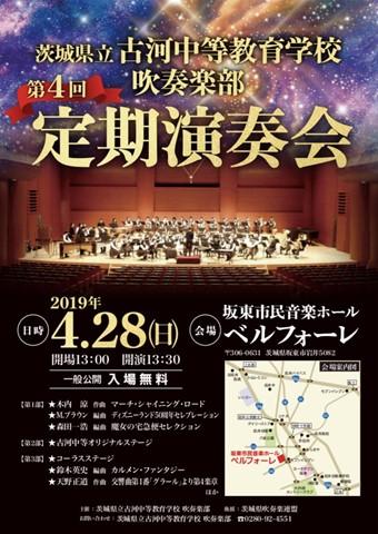 坂東市民音楽ホールで行われます。皆さんと楽しい一時になるよう,身近な曲の演奏や古河中等のオリジナルステージ等を用意しています。