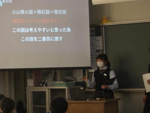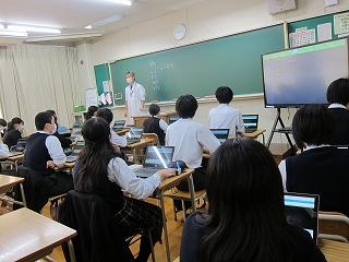 6時限目に,1,2年次生を対象に科学出前講座が行われました。東京大学大学院から講師の方をお招きして「私たちのカラダにかくされた進化の秘密」というテーマで,お話をしていただきました。肌の色や体の大きさ、かかりやすい病気の種類など、個人間でも実に様々な違いがあること,ヒトの特徴が、進化の過程でどのようにして生じてきたのかについて学ぶことができました。話の中では,理科の分野だけでなく,環境や歴史に関わる話もあり,生徒たちは,理科への興味を深めただけでなく,様々な分野の学習に取り組む大切さを学んだようです。